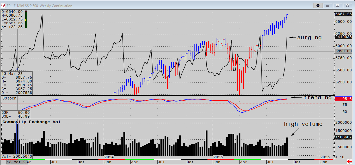 In weekly data, the S&P posted a third week of higher highs and higher lows on surging open interest and very high volume. Stock indexes have been suffering from a lack of aggregate OI and low volume for months. Weekly open interest in the S&P hit the second-highest level since March 4, 2024.