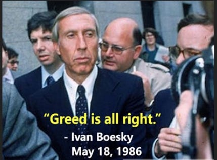 “I think greed is healthy. You can be greedy and still feel good about yourself.”
