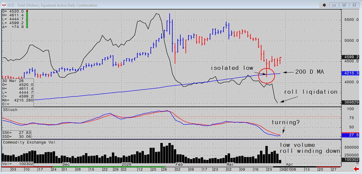Gold has a reasonably stable technical look this morning; an isolated high volume low, with 5 days of horizontal activity, the April June roll is winding down and the entire board seems to echo Trump’s confidence a deal can be struck before the April 6 deadline. Otherwise said everything is green but very small beer.