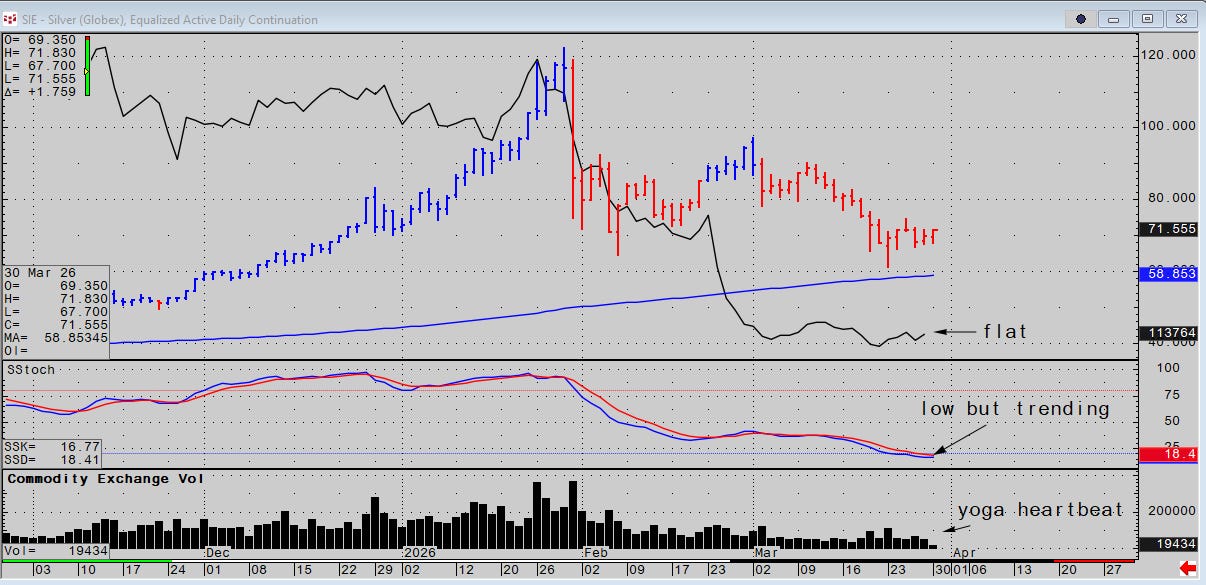 Last year’s squeeze market is history and we don’t really have a sense of what is going on under the hood in silver yet. Gold is still gold. If gold goes up silver will follow and some kind of a narrative will find it.